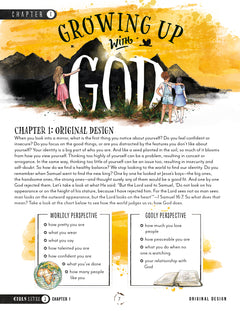 Growing Up with God is a personal journal designed to help kids and teens navigate growing up through a biblical worldview. It is available in three different levels, and each level comes in both a boys’ and girls’ version so the content can be as specific and appropriate as possible without exposing students to what they are not ready for.