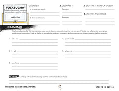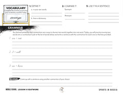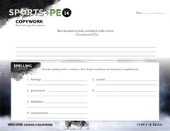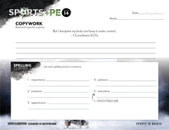 Our Sports and PE Seatwork is an optional writing mechanics notebook you can use alongside the unit. It includes daily copywork (in your choice of manuscript or cursive), memory work, spelling, vocabulary, planning, and grammar—organized by level from Early Reader through High School.