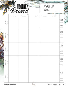 - Includes: Schedule pages, subject resource pages, hourly records, attendance, quarterly credit organizer, GPA tool, transcript, goals, awards, and opportunity tracking