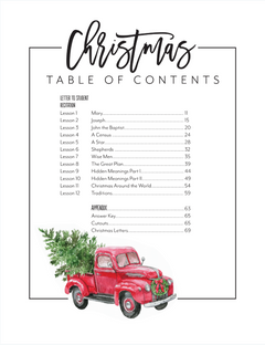 Designed for the whole family—homeschoolers or non-homeschoolers—this study can be done 4 days a week for the three weeks leading up to Christmas or as a 12-days-before-Christmas advent activity. It includes a beautiful picture book list, baking recipes, movie discussion questions, songs with music, words, and chords, plus weekly gifts to Jesus, random acts of kindness, crafts, cards, and family time that keep the focus on what Christmas is truly all about.