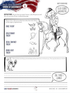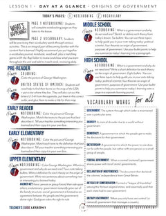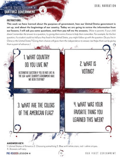 As a mini unit, US Government has just 2 student pages per day and focuses on an oral presentation to show what students know. Pre-Reader students will create a mini book to present at the end of the unit, ages 6–10 will create their own country and government structure, and older students will choose a debate topic. With weekly narration, vocabulary, daily notebooking pages, and a daily prayer to begin each day, this unit is a little treasure.