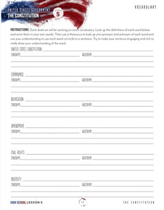 - High School: Designed for 15-18 year olds—requires full page and essay responses, research, and personal reflection and application.
